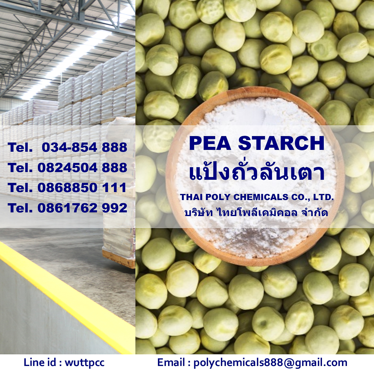 Pea Starch, พีสตาร์ช, พีสตาร์ท, สตาร์ชถั่วลันเตา, แป้งถั่วลันเตา, แป้งถั่วพี, แป้งถั่ว Pea