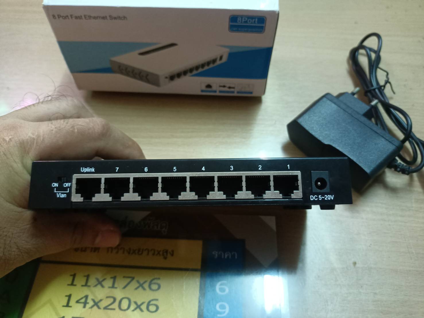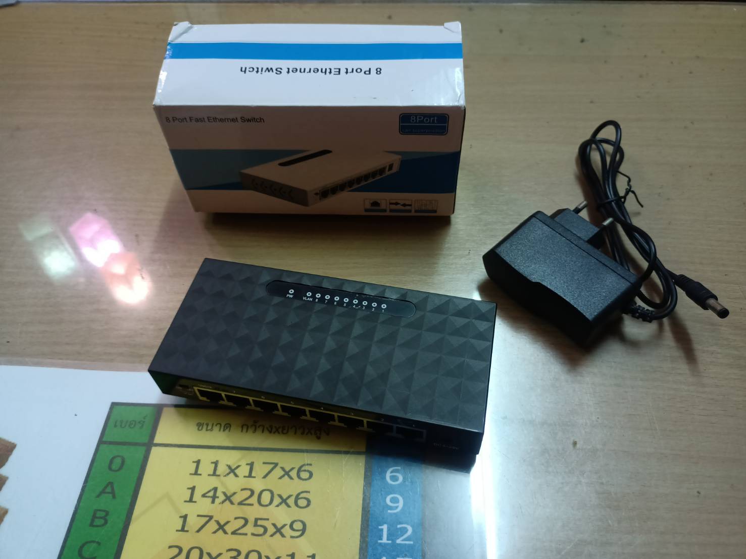 ขายสวิตช์ 8 Port พร้อมกับอะเดปเตอร์ 9V 1A มือสอง