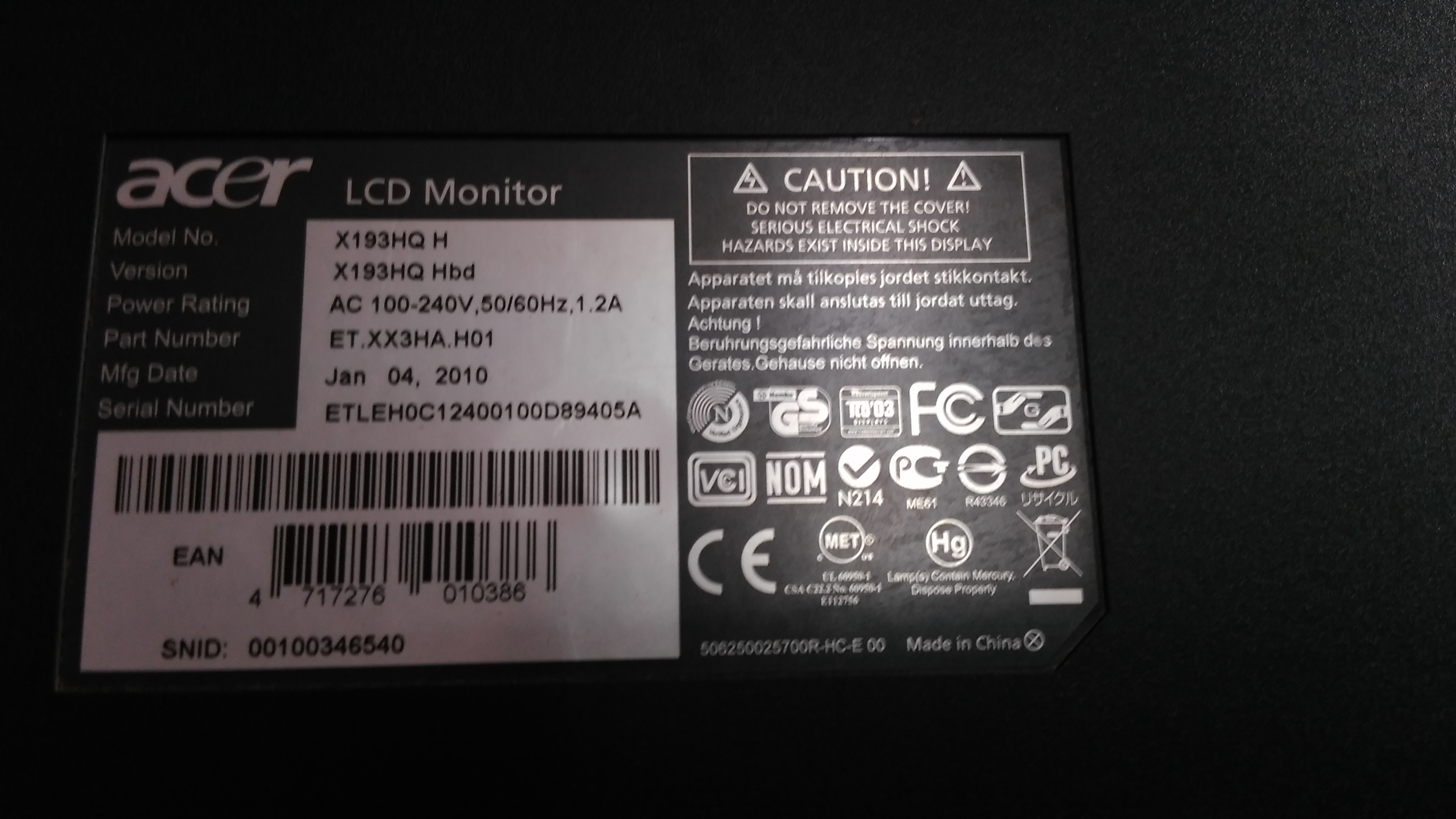 ขายจอ LCD Monitor Acer 19.5" แบบจอแก้ว เฉพาะจอ+วงจร VGA พร้อมวงจรสวิทช์(เป็นอะไหล่) มือสอง 400บาท รวมส่ง EMS